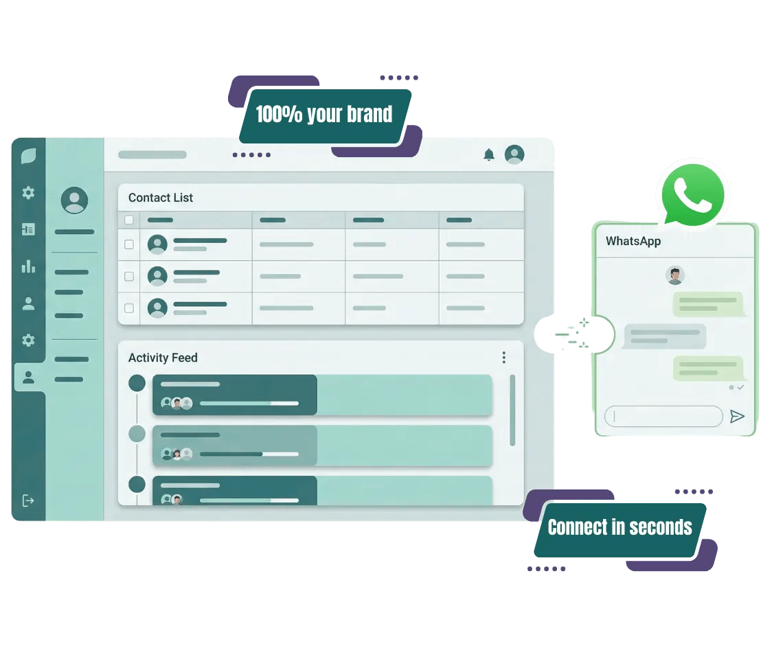 Benarkan pelanggan anda menyegerakkan berbilang WhatsApp akaun ke platform anda dan menghantar mesej terus daripada anda CRM — dijenamakan sepenuhnya sebagai milik anda, tanpa TimelinesAI keterlihatan.